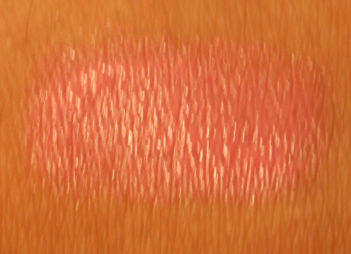 Itsn't it pretty?! It's a little light on me, but I don't care! I wear this all the time. :) It's glossy all by itself, and it's quite pigmented. The only problem is it wears off as soon as you put it on basically! This is certainly not a longwear lipstick. I still love it! :)